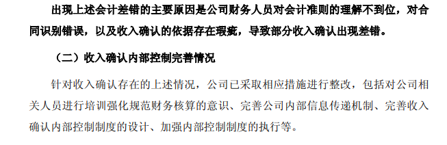 铂力特在回复中表示,出现上述会计差错的主要原因是公司财务人员对会计准则的理解不到位,对合同识别错误,以及收入确认的依据存在瑕疵,导致部分收入确认出现差错。
